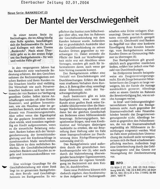 Bankrecht I: Der Mantel der Verschwiegenheit