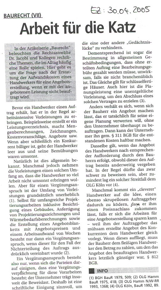 Baurecht VII: Arbeit für die Katz