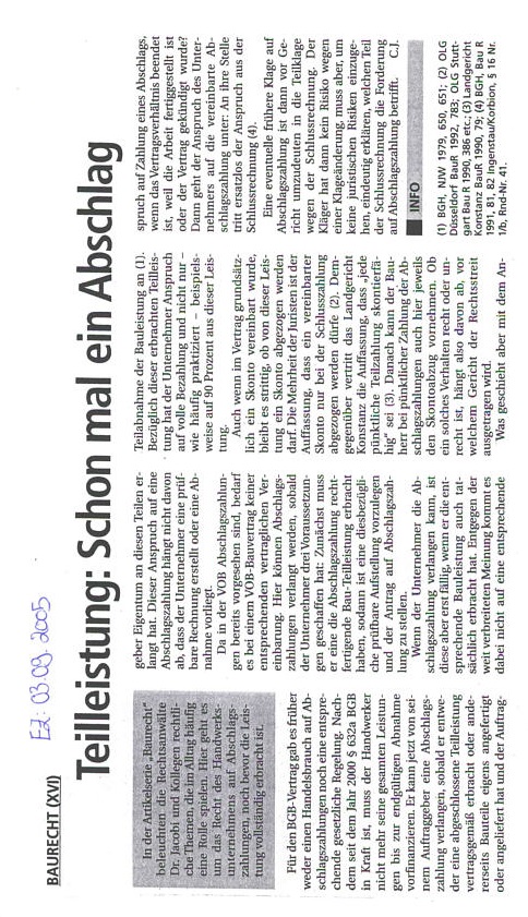 Baurecht XVI: Teilleistung – Schon mal ein Abschlag