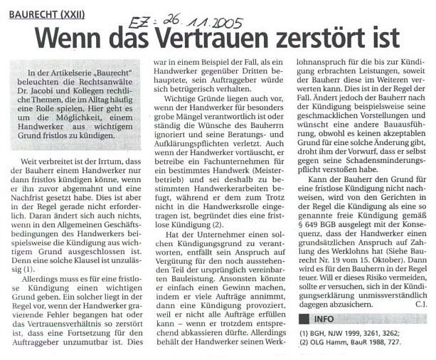 Baurecht XXII: Wenn das Vertrauen zerstört ist