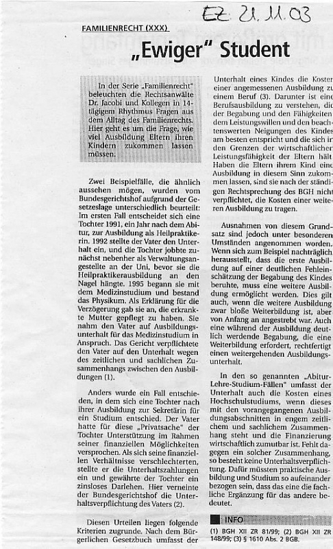 Familienrecht XXX: Ewiger Student