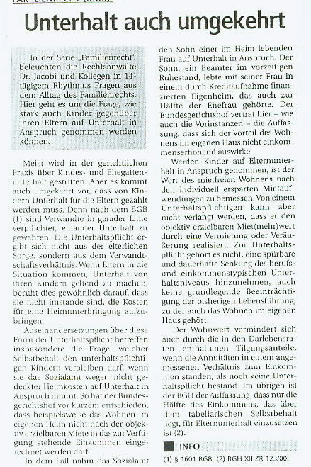 Familienrecht XXXI: Unterhalt auch umgekehrt
