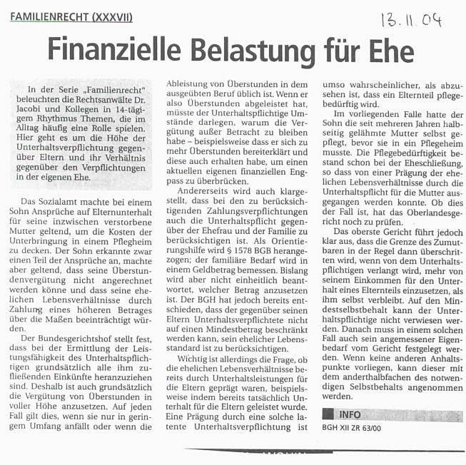 Familienrecht XXXVII: Finanzielle Belastung für Ehe